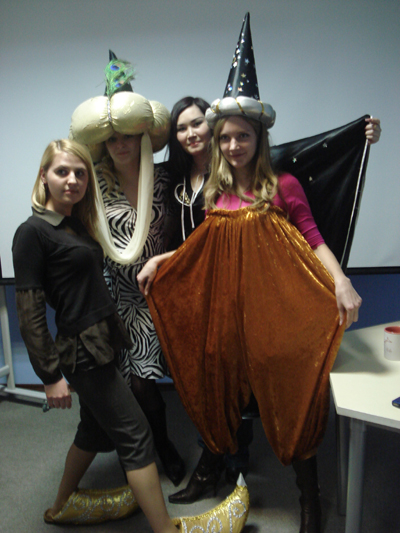 Далее мы начинаем придумывать СЦЕНАРИЙ, и поверьте, мы получаем от этого даже больше удовольствия, чем девушки от финального мероприятия (судить об этом можно хотя бы по веселому хохоту, постоянно доносящемуся из конференц-зала). Потом мы все закупаем, вырезаем клеим и вроде все. Но… НЕ ТУТ ТО БЫЛО. Причем это НЕ ТУТ ТО БЫЛО почему-то проявляется в последний день подготовок, и в итоге мы сплоченной мужской компанией сидим допоздна на кануне праздника и все доделываем. А в день праздника собираем все наши силы, артистизм, таланты и терпение и проводим праздник