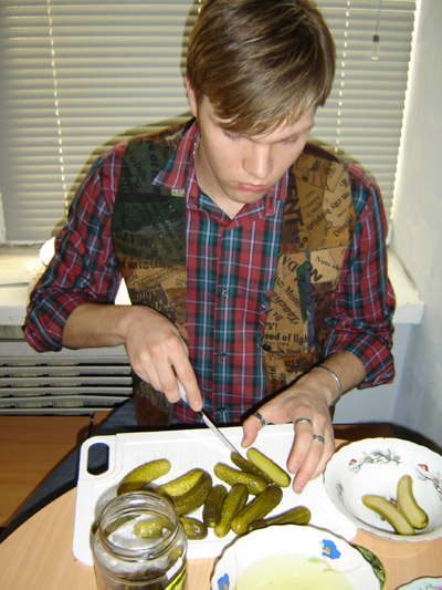 На 8 марта мы даже огурцы для Вас милые девушки нашинковать
